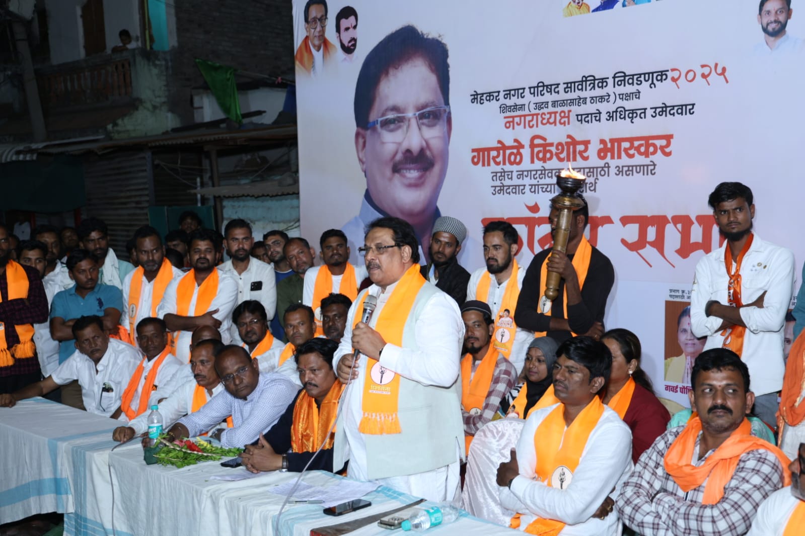 यावेळी आमदार हारुन खान म्हणाले, की मेहकर शहरातील प्रत्येकजण किशोर गारोळे बनला आहे. त्यामुळे मेहकर शहर हे किशोर गारोळे मय बनले आहे. जात-धर्माच्या नावावर मतदान मागणाऱ्यांना विकासाबाबतचे प्रश्न आवर्जून विचारा, असेही ते म्हणाले. जे आतापर्यंत पिण्याचे शुद्ध पाणी, स्वच्छता, दर्जेदार स्विमिंग पूल , रोजगार देऊ शकले नाही, त्यांना सपशेल नाकारा. निवडणूक आली की त्यांना जात-धर्म आठवतो, पण एऱ्हवी मात्र स्वत:चेच घर भरायचे असते. केवळ मतापुरताच वापर करणाऱ्यांना आवर्जून धडा शिकवा अन् माणुसकीचे मूर्तीमंत उदाहरण किशोर गारोळे यांना प्रचंड बहुमताने निवडून द्या, असे ते म्हणाले. यावेळी आमदार सिद्धार्थ खरात म्हणाले, की किशोर गारोळे हे महाराष्ट्रातून एक नंबरवर आले पाहिजे. राज्यात सर्वाधिक मत घेणारे नगराध्यक्ष म्हणून त्यांची इतिहासात नोंद झाली पाहिजे. यावेळी प्रा. आशिष रहाटे म्हणाले, की किशोर गारोळे हे मेहकरचा विकास करण्यासाठीच निवडणुकीत उभे राहिले आहेत. त्यांच्यासह सर्व नगरसेवक, नगरसेविका पदाच्या उमेदवारांना रेकॉर्डब्रेक मतं देऊन विजयी करा. विलासराव चनखोरे म्हणाले, की जे यापूर्वी नगराध्यक्ष राहिले आहेत, त्यांना आता कसला विकास साधायचा आहे. जे करायचे होते, ते आतापर्यंत का केले नाही, असा सवाल त्यांनी उपस्थित केला. यावेळी कैलास सुखदाने यांचेही दमदार भाषण झाले. किशोर गारोळे म्हणाले, की मेहकर शहरातील युवक अन् महिलांना रोजगार देणे, नियमितपणे पिण्याचे पाणी अन् स्वच्छता पुरविणे, शहरामध्ये माणुसकीमय-चैतन्यमय आनंदमय अन् खेळीमेळीचे वातावरण ठेवणे हे माझे ध्येय आहे. तुम्हा सर्वांच्या आग्रहास्तव मी निवडणूक लढवित आहे. तुमच्या आशीर्वादाने प्रचंड मत घेऊन मी विजयी होणार आहे, असा विश्वासदेखिल त्यांनी व्यक्त केला. कार्यक्रमाचे संचालन अन् आभार निसार अन्सारी यांनी केले. या कार्यक्रमासाठी युनुस बागवान, रहिम पठाण, पत्रकार अय्युब पठाण, अकबरभाई गवळी, अमिन चौधरी, इमाम परसुवाले, नुराभाई परसुवाले, रमजान परसुवाले, उस्मानभाई नौरंगाबादी, समीर मिरचीवाले, जावेद चौधरी यांच्यासह गवळीपुऱ्यातील शिवसेना उद्धव बाळासाहेब ठाकरे पक्षाच्या पदाधिकारी कार्यकर्ते अन् किशोर गारोळे यांच्या सर्व चाहत्यांनी प्रचंड मेहनत घेतली.