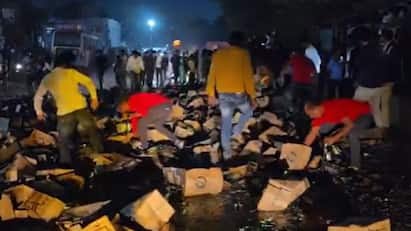 बिअरचा ट्रक उलटला, बिअरच्या बाटल्या गोळा करायला लोक गोण्या घेऊन पोहोचले